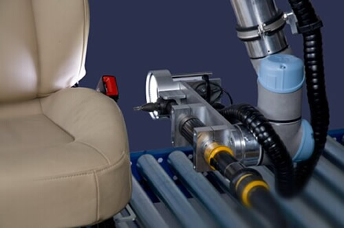 测量转矩:UR5机器人每天能够按照预先设定好的旋角,以35牛顿的转矩测量和旋紧8500个螺丝。 加强质量保障 自2011年1月起,李尔公司的贝西希海姆生产厂就开始使用UR机器人进行座椅与其框架的螺丝安装工作,这是最终装配之前的最后、也是最重要的一道生产工序。每天,这些机器人将进行三班制的工作,完成近8500次螺丝安装任务。UR5机器人被安置在那些已经手工拧紧过的座椅的传送带上。这些传送带都配备了包含了独立识别数据系统的转调器,一旦座椅被传送到机器人前方,转调器就会进行识别,机器人将自动开始按照预先设定好的旋角,并以35牛顿的转矩旋紧座椅两旁的螺丝。这个过程由安装在机器人上面的电动螺丝刀完成。 由于这些座椅的位置可能会因为之前手工阶段的操作略有偏差,机器人还必须能够监测到螺丝位置以外50 x 50毫米网格的范围。除了UR5机器人外,Faude开发的Flexvision图像处理系统在整个装配过程中也起了不小作用。运用带摄像头的2D测量系统,机器人能够被精准定位,从而完美地进行旋钮的动作。UR5机器人六轴联动的设计使得其具有出色的移动性,可以快速预判旋转所需要的正确角度。在正式投产前,为了使摄像头的设置达到最佳,Faude和李尔公司共同进行了关于机器人的接口以及光影响的测试。 由于拧紧螺丝的过程是数码操控的,机器人能够通过其图像处理系统即刻发现错误。这种自动化处理技术可以提高生产过程的可靠性。例如,如果座椅上的螺丝缺失了,机器人会单独挑出来这个产品,并以报错的通知方式发出警告信号。李尔公司的员工会在返修工作站手动完成螺丝的添加。机器人需要在完成最终装配之前旋紧并监控一大批座椅螺丝,对生产的质量保证以及错误排查起到了至关重要的作用。