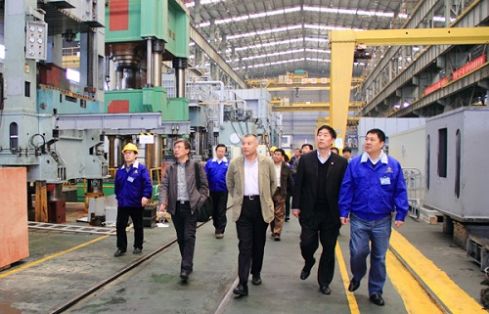 葛子干总工程师在严建文董事长的陪同下参观了公司重型装配车间、锻压装备总装生产线。在重型装配车间,严建文董事长向葛子干总工程师重点汇报了合锻自主研发的世界最大吨位的15000吨双动充液拉深液压机,该设备具有主机精度高、控制精度高、响应速度快等特点,对于提高新型运载火箭、飞行器、战略武器装备的性能要求,对打破国外技术封锁,提高国家技术竞争力具有重要意义。