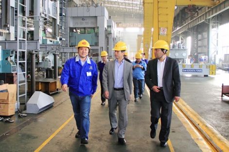 4月1日下午,三菱重工业株式会社执行董事、中国总代表岩崎啓一郎访问合肥合锻机床股份有限公司。合锻公司董事长严建文、副总经理王玉山、董事长助理李辉等陪同岩崎啓一郎参观了公司重型装配车间、锻压装备总装生产线,并就企业生产规模、技术创新等情况作了介绍。