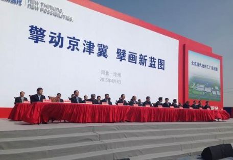 在京津冀协同发展战略全面推进的大背景下,北京现代汽车有限公司与沧州实现成功“牵手”。3日上午,北京现代沧州工厂在沧州正式开工建设。省长张庆伟宣布项目开工。北京市副市长张工、副省长张杰辉、工业和信息化部总工程师王黎明、韩国现代汽车集团副会长郑义宣、韩国驻华大使金章洙、北汽集团董事长徐和谊等见证开工。张工、张杰辉、郑义宣、徐和谊共同为北京现代沧州分公司揭牌。 张工在致辞中说,北京现代落户河北沧州,是北京市统筹规划利用资源要素空间,推进京冀产业对接协作的重要举措。北京市将与河北省共同完善政策,提升服务,全力支持北京现代沧州工厂项目建设,推进一系列产业功能的有序转移,实现京津冀汽车产业圈的共同发展,推动京津冀协同发展迈上新台阶。 张杰辉在致辞中说,北京现代沧州工厂项目是京津冀协同发展大背景下河北承接首都产业转移的重大战略支撑项目。项目建成投产后,将成为区域协同发展的新典范。河北省将全力营造良好的施工环境,为项目高质量高效率推进保驾护航。希望建设单位科学安排,规范管理,精心施工,争取项目早竣工、早投产、早达效。 据悉,北京现代沧州工厂是北京现代首次在北京以外地区投建的工厂。工厂位于沧州经济开发区,距离北京215公里,紧邻京沪高速,工厂及配套项目总投资约120亿元,预计于2016年底建成,首期投产一款经济型轿车和一款SUV改款车型。沧州工厂整车年生产能力将达到30万辆,发动机年生产能力将达到20万台,预计年销售收入360亿元,税收45亿元。 北京现代沧州工厂将采用国际先进的汽车制造设备和技术。在打造绿色工厂方面,沧州工厂将有效降低能源消耗,注重清洁生产与环境保护,实现废气、废水、废弃物的绿色排放与回收利用,同时实现绿色物流;在打造品质工厂方面,沧州工厂将通过多种现代化管理体系,实现对品质的全程把控,力争实现生产质量零缺陷;在打造智能工厂方面,沧州工厂将在冲压、焊接、涂装、总装四大工艺方面配备全新自动化工艺设备,构建柔性生产体系。