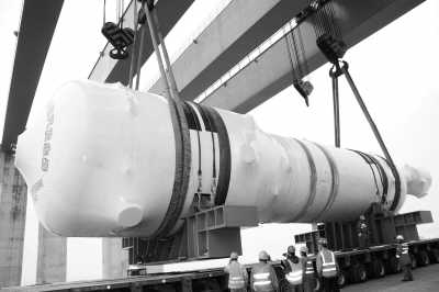 2015年1月5日,首台国产AP1000核电蒸汽发生器抵达三门核电现场并完成卸船,标志着我国核电站国产化率实现了由不足一半到完全国产化的跨越。三门核电2号机组共设2台蒸汽发生器。首台国产AP1000核电蒸汽发生器高22.5米、最大直径5.8米、重达679吨,设计寿命 为60年,制造工艺代表了当今世界核电设备制造最高水平。