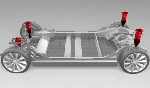 众所周知在Model S刚上市时底部是没有这块保护板的,而在几次意外之后加装了厚达7mm的钢板用来保护,这是每个关心这款车的人都知道的故事,而我在和他们的工程师详细交流之后,获知了更多的细节。 实际上整车底部有三种材质,并非”一块钢板“。Model X的车头由于是空的(其实也有ECU和刹车泵以及空调压缩机等),因此底部并不需要特殊保护,但特斯拉设计了一种近似于塑料和橡胶的软性材质,使得在底盘遭到磕碰时能够向两边分流,减少异物直接磕到电池的几率。而在它之后,也就是前桥之前,有一块非常坚硬的钢板横置于电池之前,它的作用就是用来抵御硬物的直接撞击,很显然电池是特斯拉重点保护的对象,而在加装了一整块覆盖电池底部的钢板之后,类似的意外至今还没有发生过。 所以对于Model S的底盘来说,既简单也不简单,还是花了一些心思的。而在即将发布的Model X身上我们有理由相信特斯拉会进一步强化底盘保护,毕竟SUV车型遇到的路况会比超跑要复杂得多。 说到这里可能很多人会问,这和智能扯得上关系吗?实际上当你开过特斯拉之后就会感觉,它的底盘还是非常智能的,而且绝对是你之前听都没听过的。 Model S的底盘有4级高度可以通过空气悬挂来升降,既可以手动调节,也可以设定一个速度值,当超过这个速度之后Model S会自动降低车身高度,获得更好的稳定性以及更小的风阻。 这其实不算什么,很多豪车都有这功能,空气悬挂更是豪车标配。接下来我要说的才算牛。