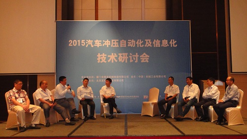 2015年5月20-22日,由中国锻压协会主办 “2015金属成形行业自动化与信息化技术研讨会——汽车冲压自动化及信息化应用”在江苏扬州市圆满召开。 参会企业包括汽车冲压行业的设备、零部件、机器人制造商等多家企业,110余名来自全国各地的专家学者和企业代表参会,会议分为技术讲座、专题讨论和企业参观三个环节。