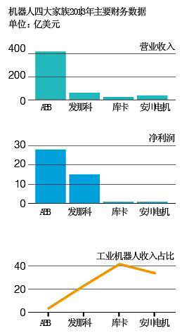 在工业机器人领域,德国库卡,日本发那科(Fanuc)、安川,瑞士ABB四家企业遥遥领先,被戏称为机器人“四大家族”。
