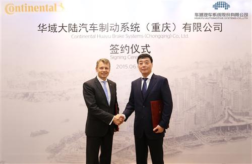 全球领先的汽车零部件供应商大陆集团秉持“扎根中国,服务中国”的战略,持续投资在华布局,贴近客户并满足中国市场快速增长的需求。大陆集团近日在重庆正式宣布与华域汽车股份有限公司(下称“华域汽车”)共同投资新建华域大陆汽车制动系统(重庆)有限公司。来自大陆集团和华域汽车的高管共同出席了新厂合作的签约仪式。