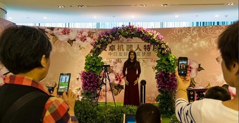 7月7日,上海,美女安卓机器人现身虹桥,能说会唱表情丰富。近日,完美的仿真人类机器人空降虹桥高岛屋百货。 这款机器人曾在2015全球移动互联网大会上亮相,名字叫:“阳扬”,“她”拥有光滑细腻的仿真肌肤,丰富真实的面部表情,自然亲切的语音对话,能够与观众握手和拥抱,还能表演歌曲等。 据悉,在展览开幕式上,日本“现代机器人之父”石黑浩也登台亮相,为大家从科学角度揭开仿真机器人的神秘“面纱”。在此次商家推出的安卓机器人特展上,市民可以一睹类人机器人的真面目、亲身领略机器人科技的最新发展。同时也见证了中日在高科技领域方面的友好交流。 |