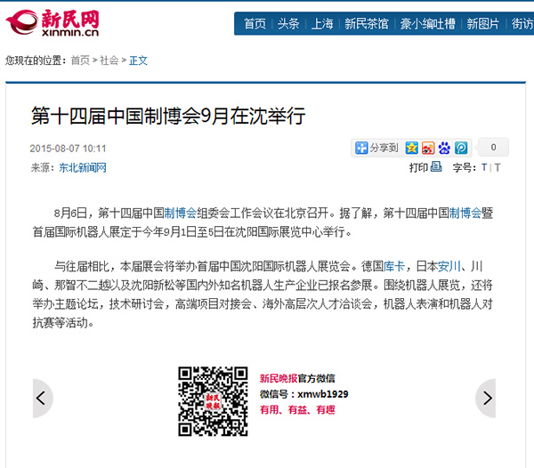 据统计,有几十家国内主流媒体对2015中国制博会和首届“中国沈阳国际机器人展”进行报道。同时,展会合作的上百家行业专业媒体也在面向专业领域为制博会造势。相信本届制博会将吸引前所未有的关注。您,还在等什么? 预登记参观中国制博会,有机会参与抽大奖等活动。 预登记方式: A:http://sy.jnmte.com/网站,点击“我要参观” B:致电400-6767-200,索取参观登记表,传真或邮件预登记; C:添加“金诺机床展”官方微信,进行微网站预登记; D:致电0532-55552981,电话预登记。