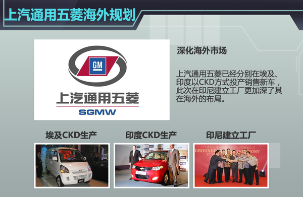 新公司的成立标志上汽通用五菱在海外市场的又一次深入。早在2012年上汽通用五菱曾与通用埃及公司签订协议,借助通用在埃及的工厂,以CKD方式生产五菱荣光车型。而在需求量日趋渐涨的印度市场,上汽通用五菱也以CKD方式生产销售五菱宏光车型。此次上汽通用五菱印尼公司的正式动工,将进一步扩大其海外销量和产品在全球的市场竞争力。 如今,国内微车市场增速不断放缓,对于上汽通用五菱而言守住国内微车市场的同时,海外市场将成为其销量可持续增长的突破口,不再以贴牌形式生产销售也侧面体现了企业对于产品本身的信心。根据上汽通用五菱此前公布的规划,到2015年将实现200万年销量,其中出口量将占10%。 |