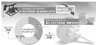 上半年,机械工业主要经济指标延续了去年以来的回落趋势,多项指标创下5年来同期最低。专家认为,二季度以来下行速度趋缓,已有回升迹象,预计全年增速低于上年,全行业走出低谷、实现稳定增长仍面临较大压力。
