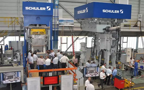 2015 年7月7日,格平根/瓦格霍伊塞尔– 舒勒为钛零部件的成形研发出了一台创新型拉伸压力机,同时适用于冷成形和热成形工艺。几天前,舒勒在瓦格霍伊塞尔厂区的内部展览会上发布了这台复合压力机。现场有超过 60 位来宾目睹了这台热-冷拉伸压力机生产航天航空工业用钛零部件的过程。