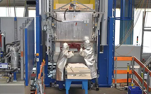 这台复合压力机采用宽度达 1.6 米的常规深拉伸模具用于冷成形工艺,而在压力机内,一个经过特别设计的加热室可进行热成形工艺加工。它会在钛料片进行热深拉伸前,将其加热到 700 – 950 摄氏度。压力机的拉伸垫装配有保护性的水冷装置和陶瓷绝热层。舒勒还成功地将带有耐高温顶料削的拉伸垫整合到了系统中。顶料销会穿过若干温度层,通过它可以确保超高精度的料片夹持力。