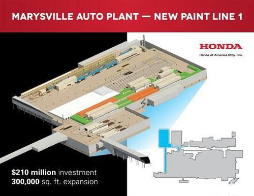 综合外电报道,本田汽车计划斥资2.1亿美元在美国俄亥俄州马里斯维尔(Marysville)工厂新增一条现代化涂装生产线,以减少环境污染并提升产品质量。