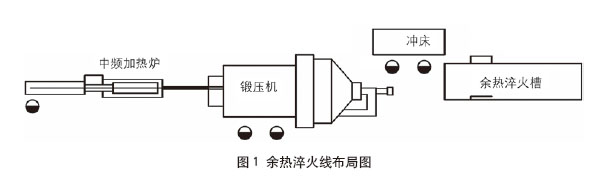 造行业属于传统高耗能行业。近年来在国家节能减排政策的推动下.各种节能技术在锻造行业内的应用越来越广.全行业的单位产值能源消耗成本不断降低,尽管国际市场能源价格有所下跌但是作为构成锻造成本的主要项目.锻造企业必须积极应对节能问题。 锻造行业的节能途径有很多_材料、设备、工艺等都会对能耗产生影响。这方面的报道和文章经常见诸报端本文结合我公司的生产实践介绍了余热淬火和余热正火工艺的实际应用。 通常.热模锻件的主要生产工序有落料一加热一锻造”切边一热处理一清理等其中锻前加热和热处理加热是耗能最大的工序.其能耗占整个锻造过程能耗80 %以上。热锻工序完成后锻件仍有1000 ℃ 左右的高温.为后续的热处理提供了可利用的空间。锻后余热用于热处理不仅可以大大降低热处理能耗.还可以缩短生产周期.提高生产效率.减少设备投资.是一条行之有效的节能途径。 利用余热淬火的生产实践 余热淬火处理的锻件不仅具有优良的综合机械性能.并且有工序短、生产效率高等优点。南汽锻造在20 世纪70 年代就在70 发动机连杆的生产过程中应用过此项技术。近年来.经过不断探索.在链轨节上应用余热淬火工艺的实际生产中取得了显著成果。链轨节锻件的材料属于中碳含硼钢.原生产工艺为:下料”中频加热”锻造一切边冲孔一再加热一淬火一回火。由于该产品需求量巨大.开发初期.采用了推杆通过式电阻加热炉. 存在以下4 个问题。 (1)该锻件需求批量大_除了锻造需消耗大量电能外.热处理加热能耗也很大。 (2)热处理工序效率低下。如果要满足需求则需增加数条大功率网带式淬火炉.涉及到公司的电容量所限.投入巨大且不易实现。 (3)该产品外形复杂.截面变化大.热处理后的产品变形无法控制一次合格率低。 (4)整个制造周期长.生产中间过程存货过多。经过对锻件的全面分析.针对上述问题.我们认为采用余热淬火工艺是一个综合效果理想的出路。经过大量试验分别对中频加热节拍、始锻和终锻温度_锻后停留时间.淬火温度、介质浓度和温度等各项因素对淬火质量的影响搜集了大量数据在此基础上制定了一套合理的工艺规范。大规模应用后产品质量完全符合客户的要求。新工艺为:下料一中频加热一锻造一切边冲孔一淬火.回火。取消了原工艺中的再加热工序.省却了这部分的能耗。 我们先后对5 条压力机锻造生产线进行了改造把余热淬火、回火、探伤检验等组合成线。 典型布局示意图如图1 所示。