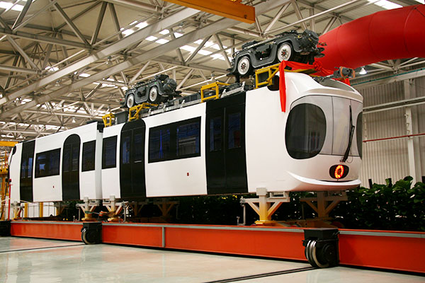 悬挂在空中,长着熊猫脸,可像优美孤线运行,又如空中飞动的画面,一种可在城市或景区上空运行的轨道列车,9月10日,在中国中车旗下南京浦镇车辆有限公司正式下线。这是中国首列可以在空中运行的轨道列车,而研制该空中列车的中车浦镇公司前后只用了4个月时间,创造了研发史上的奇迹。 下线仪式在浦镇公司新厂区现代化厂房举行。中车浦镇公司党委书记赵大斌主持了下线仪式,中车浦镇公司总经理李定南致辞,业主代表作答谢讲话。 空铁列车,是悬挂在空中轨道上运行的一种轨道车辆,作为一种轻型、中速、中运量的新型公共交通方式,是一体化、多模式、立体公交体系的必要组成部分。 中国首列空铁采用新型大容量电池牵引,采用全焊铝合金框架结构加复合材蒙皮技术,实现了车体的轻量化,具有美观舒适和隔音隔热的特点。其核心转向架,采用高度集成化设计,具有结构紧凑、安全可靠、磨耗小的显著特点。列车采用橡胶轮承载,有噪音更低、爬坡能力更强的特点;采用自锁式悬吊机构,结构安全性高,动力学性能更优秀,保证了列车具有超强的曲线通过能力和全天候运行能力。集成了永磁水冷电机驱动系统,动力更强,更节能环保。国际首创的电池拖车转向架设计,为用户提供了多制式的受流方案选择。 国际上只有两个国家拥有空铁列车技术,国内是完全空白,研发难度可想而知。今年5月,浦镇公司与业主达成合作协议,专门成立了项目领导组,专项研发团队,在项目执行过程中,集中优秀团队,优势企业所长,在项目团队的组织下,仅仅4个月时间,从设计到制造,从无到有,从概念到整车,克服了重重困难,以强大的核心力与凝聚力按期完成了任务,并顺利下线,创造了研发史上的奇迹。 在现代立体轨道交通体系中,空铁列车系统与常规公交、轨道交通等其它公交方式错位发展、互为补充,是公共交通方式的有益补充和完善 ,是当前国家发展绿色、环保、轻型、便捷公共交通模式的发展方向,也是区域性和中运量交通的选择之一,在满足人们安全、快捷、舒适出行的同时,更能体现出一个城市的现代化、科技化和品质化的特点。 按照协议,下阶段,空铁列车将进行各项技术试验,在充分运行考验后,投入试运营。 |