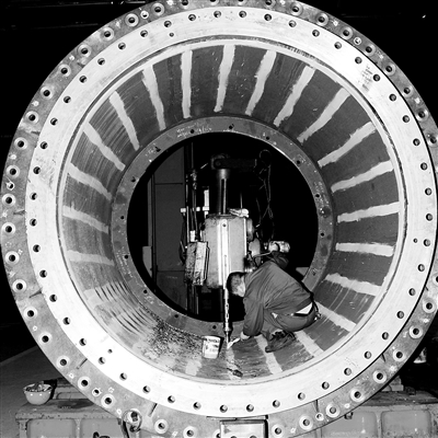 中信重工机械股份有限公司近日收购唐山开诚电控设备集团有限公司80%股权,从此获得机器人、自动化、传动、传感器等产业的互补,借助智能装备产业,开始建立转型发展的新优势。这被业内认为是中信重工不断转型发展的缩影。 经历60年的发展,中信重工已从“一五”时期的洛阳矿山机器厂,发展成为世界最大的矿业装备和水泥装备制造商。2012年,国内最先进的特大型球磨机在中信重工试车成功。图为工人在位于河南省洛阳市的中信重工磨机生产车间里工作。