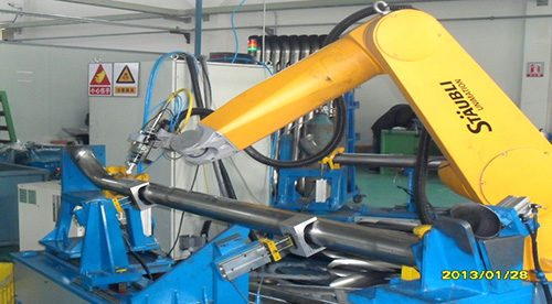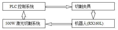 3、机器人激光配置:机器人选用法国史陶比尔RX160L,配拉制器CS8C,激光器配:德国IPG-YLR-500W光纤,5英寸切割头和创科源控制系统控制原理图: