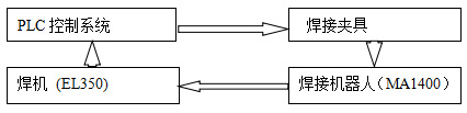 自动化设备配置类型介绍 几年来公司为能提高生产效率,大力引进新技术、新设备,特别是把机器人应用在焊接、激光切割和冲压工艺上,利用PLC控制技术实现生产的自动化,提高了生产效率,减少了人员配置: 根据不同的需要进行不同的配置类型 1、机器人弧焊配置:机器人选用安川MA1400,焊机选用EL350.为能满足多工位焊接的需要,我们设计了PLC控制系统来控制机器人、焊机、夹具的自动化焊接控制原理图。