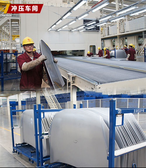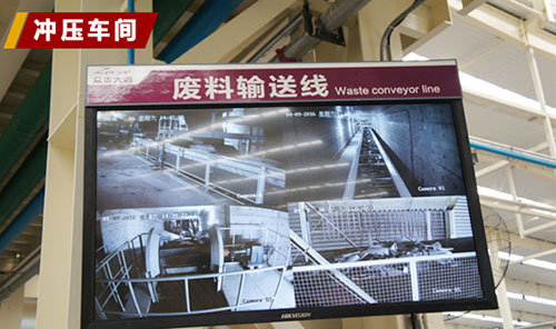 何为“工业4.0”?通俗来说,“工业4.0”是利用仿生学原理来改造传统工业制造的过程,尽可能地成为一个有感知、能思考的有机系统,也就是我们说的“智能工厂”,这点大迈工厂做得就很不错,它实现了销售订单、生产采购、物料配送等关键环节的信息化控制,并且关键性工位配备了超过200台全自动机器人。 大迈工厂由完整的冲压、焊装、涂装、总装四大工艺生产组成,自动化水平已经达到目前合资品牌的制造水平。兵哥走进工厂,第一感觉就是流水线工人非常少,自动化程度非常高。除了涂装车间兵哥进不去以外,其他三大生产线被兵哥来了个大起底。 冲压车间 先说冲压部分。这也是兵哥第一个参观的生产线。冲压车间总建筑面积达3万多平方米,由四条大型压力机生产线组成,承担大中型冲压件的生产任务,负责板料的剪切、落料、冲压成形、原材料存放、毛坯存放、冲模存放、检具存放、冲压件检测、返修、转运、以及机模修、模具小修及维护、废料处理等工作。