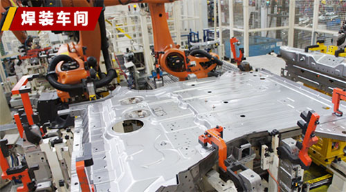 无一例外,质检是冲压件最关键的一步,大迈确保100%检测。如果出现瑕疵品,工人会阻止该瑕疵品进入下一个工序,从而最大程度保证整车的品质。 焊装车间 焊装车间是一个高自动化、高生产节拍、高柔性化生的产车间,先进程度在中国品牌中名列前茅。车间里的机器人为德国著名品牌KUKA,该品牌机器人也是奔驰、大众等车企指定品牌。车间共设6条全自动化生产线,分别为地板分拼线、侧围线、门盖滚边线、主焊线、调整线、空中储运线。 地板三大件采用吊具上件,机器人自动焊接的工艺。上件完成后,工装滑入焊接位置,机器人先进行点定焊接,再抓起工件进行空中补焊后放入下一工位,通过工装滑入指定位置,由机器人抓入合拼工位。 合拼工位焊接完成后采用重载机器人抓入升降机,升降机升至WBS平台,自动输送至主焊UB线。 侧围线共有13个工位,采用转台上件,机器人焊接机及搬运,滑台切换车型的工艺方法。 左右两边侧围共用机器人,焊接完成后由机器人抓入EMS,EMS再由空中轨道输送至主线预装工位。 侧围需要涂上结构胶后,再与车身底板进一步固定。 白车身运送到涂装车间之间,工人会在平行光灯下对车身表面进行最后的检查,确认没有影响涂装质量的瑕疵,随后才能运往涂装车间。