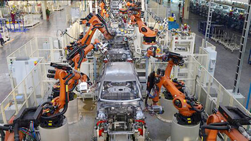说到这里,不得不说说冲压A线与冲压B线了。当前国内SUV市场进入了白热化,各个品牌都最大程度地提高整车工艺。大迈在这方面不甘落后,采用国内外先进的生产线、生产设备、一流模具,提高大迈X5的整车品质。 冲压A线为全封闭冲压自动化生产线,主要生产汽车外覆盖件,压力机为四点机械压力机,自动化由ABB机器人组成的系统,并由ABB公司集成,整条线全自动化连续生产。