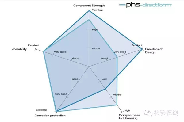 此次奥钢联联合安米推出的PHS-Directform热冲压镀锌钢具有多种优点:超高强度,可以设计出具有以下优点的轻量化白车身 •最高级别的阴极腐蚀保护 •更易组装 •超高强度:最高可以到1800Mpa超高强度 •更安全:更好的冲撞性能(延展性) •更经济:可以减少25%的车身重量,降低油耗 此外,直接热冲压成型工艺还具有以下优点: •单个成型工具 •最大化利用原材料 •减少加工道次 •更少维修保养费用 •简单的加热炉技术