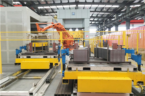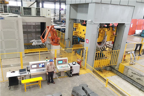 1200T拆剁机和机械手臂 其次我们的加热炉采用双边双出的多层箱式加热模式,能够保证物料填充和送料冲压的过程高效有序,并且大幅度减少加热炉内保护气氛和热量流失,降低生产过程中的氧化皮粉尘的困扰,同时特别节能。