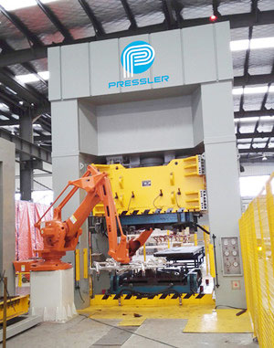 苏州普莱斯勒1200T热冲压生产线全貌 而我们公司-苏州普莱斯勒先进成型技术有限公司,通过近几年的探索,已经研发出一条世界级先进的热冲压生产线1200T并且已经投产。这条生产是围绕加热炉的技术创新,其核心专利是自动进料系统、加热稳定系统和自动出料系统,与传统的热冲压生产线相比具有以下三个优势: 首先这条生产线总长只有20多米占地面积非常小,而且它的性能和其他传统热冲压生产线没有差别。生产全自动化集成,拆垛机、加热炉、压机一应俱全。