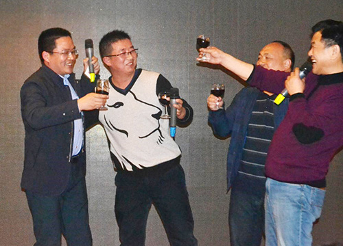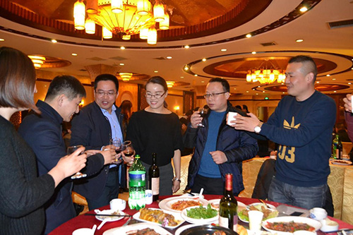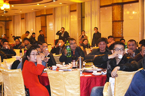 top2:晚宴聚会 与会议环节承担的沟通学习职能不同,此次活动的晚宴环节呈现更多的是友谊和谐情。 觥筹交错间,大家共叙友谊,饮酒调笑,为合作打下坚实基础。 此外,为答谢从各地赶赴至此的新朋老友及展商买家,主办方准备了价值万元的礼品,除了人手一份的伴手礼,还设置抽奖环节,抽奖频率一波接一波,喜得奖品的幸运儿还被要求饮下“福酒”。