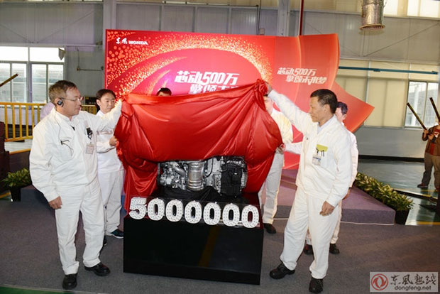 2017年1月5日,东风本田发动机有限公司厂区内锣鼓喧天,该公司第500万台发动机正式下线暨新环保型发动机2.0T导入仪式举行。早上10:45,东风本田发动机公司总经理入江茂,党委书记占富清,党委副书记、工会主席肖玉升和员工代表共同见证了这一激动人心的时刻。