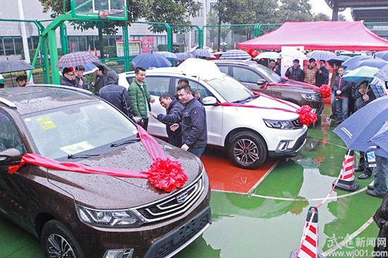 年初七,江苏龙城精锻有限公司一派喜气洋洋。员工们个个热情高涨,新年抽奖活动正在公司篮球场举行。 “由于企业订单充足,2016年会抽奖活动未能如期举行。选择节后上班第一天进行抽奖,既是为了感谢员工对企业发展做出的贡献,也希望新的一年里,大家能继续开拓创新、战胜困难,不断书写新辉煌。”公司副总经理王玲说。 据了解,此次龙城精锻专门拿出60多万元筹备这场活动,奖品不仅有平板电脑、苹果手机,还有3辆吉利远景SUV汽车。随着主持人宣布活动开始,公司高层人员依次抽出各类奖项。看着抽奖显示屏上不断跳动的名字,现场欢笑声此起彼伏。