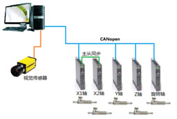 1、问题描述 客户现场安装空间狭小,下压轴需要做力矩控制,插针要旋转不同角度。 其他方案体积大,结构复杂,维护成本高,力矩控制偏差大,机械设计元件多等。 技术数据:下压轴需要200ms的持续压力150N。 2、解决方案 三个直线电机执行X轴和Y轴的空间运动。直线旋转电机执行Z轴和旋转轴的运动。 驱动器提供不同的总线接口及模板控制程序,该方案采用CANopen总线控制。 上位机可使用Labview, C++,.Net,或者PLC、板卡等控制。 直线电机驱动器支持主从同步控制,使用简单,无需额外加控制器及编写同步程序。