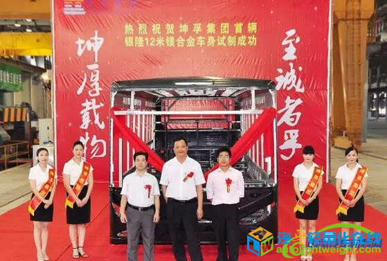 项目主要负责人与12米镁合金客车车身合影留念 中国首辆12米镁合金车身骨架重仅0.8T,在汽车轻量化领域里是一个重大突破。随着国家节能减排、绿色环保政策法规的逐步实施,汽车轻量化已是未来汽车发展趋势。这次福建坤孚与银隆客车一起相应全球布局,加大对汽车轻量化的投入,完成了镁合金车身骨架的研发,并联合主机厂将镁合金车身骨架推向市场。