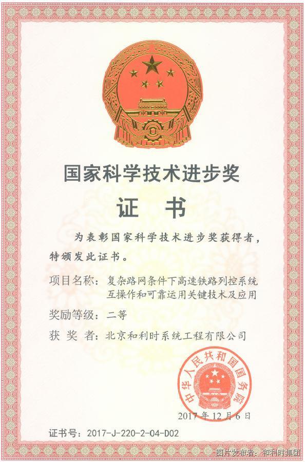 2018年1月8日,国家科学技术奖励大会在人民大会堂盛大开幕,中共中央、国务院领导出席大会为2017年度国家科学技术奖励项目获奖者颁奖。由和利时集团副总经理兼北和总裁徐悦、集团副总经理兼北和副总裁兼北和总工程师何春明参与完成的“复杂路网条件下高速铁路列控系统互操作和可靠运用关键技术及应用”项目荣获国家科技进步二等奖。 国家科学技术进步奖旨在激励我国各行业技术研究、开发、创新,逐步推广应用先进科学技术成果、促进高新技术产业化,对于在完成重大科学技术工程、计划项目等方面做出突出贡献的我国公民和组织予以表彰。 近年来,和利时始终聚焦轨道交通自动化技术的自主创新,形成行业主导技术和品牌产品,解决行业发展中诸多的热点、难点和关键问题,在建设科技强国、服务经济社会发展的过程中做出了杰出贡献。 “复杂路网条件下高速铁路列控系统互操作和可靠运用关键技术及应用”项目形成了具有自主知识产权的高速铁路列控系统互操作和可靠运用的成套技术,已达到国际先进水平,其中,电磁干扰评估技术达到国际领先水平。该项目成果已经在我国高速铁路中广泛应用,对保证我国高速列车在高速铁路网中的互联互通、安全和高效运行发挥了重要的作用。