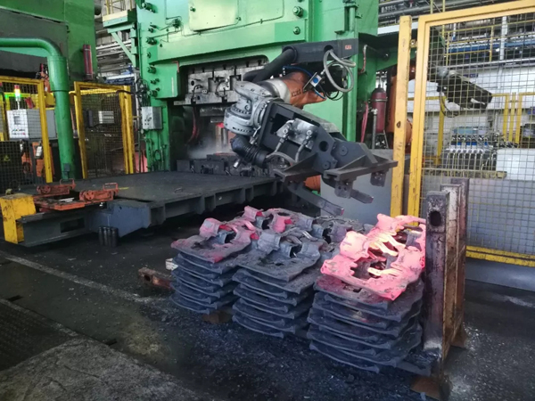 一汽锻造(吉林)有限公司前曲车间新线12500吨锻压机生产线(302线)切边机组R6机器人经过“十一”期间调试,实现了锻件飞边自动码垛动作,该程序实验成功,可使锻打线减少一名操作人员,是一汽锻造公司推进“降本增效”又一有力突破。