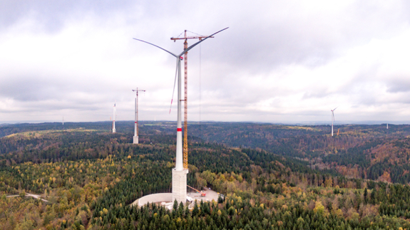 全球最高的风力涡轮机已在德国成功并网 Max B?gl Wind公司的四台风力涡轮机组成了斯图加特附近盖尔多尔夫的一个更大规模可再生能源和储能项目的试点阶段。 每年每台风力涡轮机的平均发电量都超过10吉瓦时,足以供应大约1万户家庭。 到2018年底,开发商希望一座集成的抽水蓄能电站以四小时蓄水电力形式提供额外的70兆瓦时电力。 这样设计的目的是在强风期间风力紧缩或停止的其他情况下,使涡轮机继续发电。 风力涡轮机的轮毂高度达178米,从地面到叶尖的总高度可达264.5米。 公司首席执行官Josef Knitl表示:“我们很自豪能够向能源转型成功的迈出重要一步,并以此为里程碑来减少二氧化碳排放量。” |
