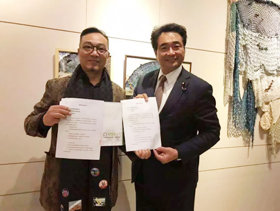 图:左-日本亚细亚经济文化振兴机构理事长、中日一带一路促进会会长 山谷道人·黄实先生 右-日本亚细亚经济文化振兴机构顾问、参议院议员、自民党外交部会长 松下新平先生 日本亚细亚经济文化振兴机构顾问、参议院议员、自民党外交部会长松下新平表示,此次合作是中日关系的重要组成部分,中日两国开展合作潜力巨大、前景广阔。对推进智能制造发展,促进产业对接交流有很大的作用。