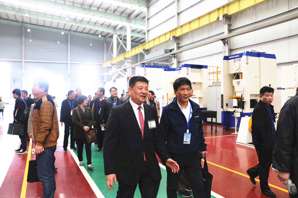 紧接着引领来宾们参观生产车间,高大明亮的厂房内,美丽的兴锻“姑娘们”一个个端坐在那里,似乎是等待着如意郎君的模样。上海锻协的来宾们一一参观过各类机型,火热的交流着各类技术问题,而今天的主角——温锻多连杆式压力机自动化线ZXFL-8000和冷锻肘杆式压力机自动化线ZXFN-10000正展现出她们俏丽的身姿,迎接赞誉。