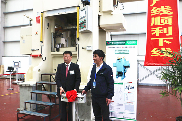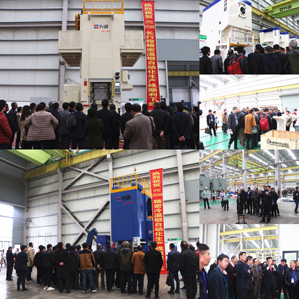 温锻多连杆式压力机自动化线ZXFL-8000前,由总经理张清林先生和上海纳铁福传动系统有限公司陆总一同按下了启动键,这一举动不仅是CPTEK—兴锻冷温精锻的成功实施,更是打破国外公司温锻生产线的技术垄断,填补国内空白,实现替代进口,促进精密温锻生产工艺的升级换代。