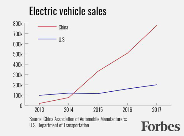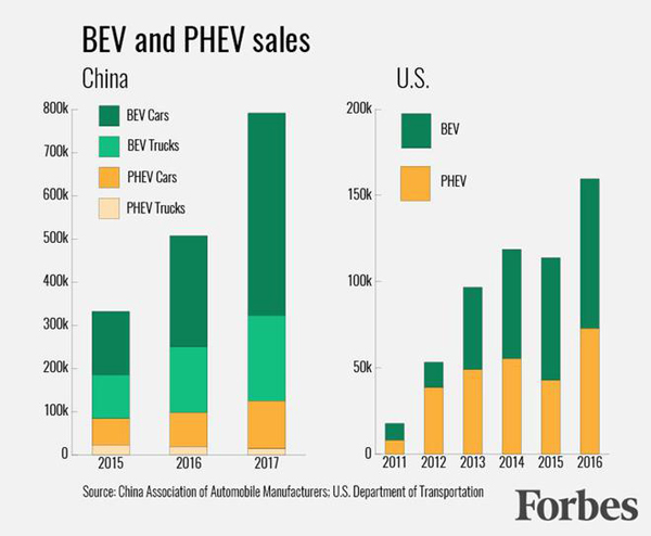 2017年新能源汽车市场占比2.7%,比上年提高了0.9个百分点。据预测,2018年中国新能源汽车的销售增长将达到40%左右。 中国在新能源汽车领域的确在引领着世界。在充电桩上,截至2017年底,中国公共充电基础设施保有量为21.4万个。私人充电桩有23.2万个。