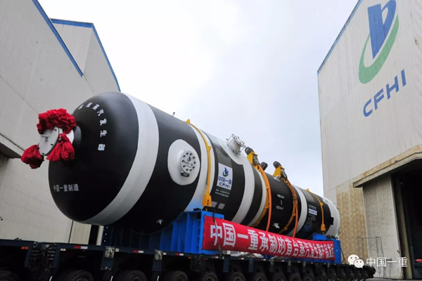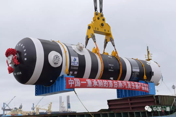 2018年4月23日,由中国一重承制的红沿河5号机组首台(套)百万千瓦级核电蒸汽发生器在核电石化公司完胜收官并发运。首台(套)核电蒸汽发生器的完胜收官,不仅开创了中国一重自主研制核电蒸汽发生器的先河,而且进一步拓展了中国一重承制核岛主设备等领域,对于中国一重实现核电重大技术装备国产化、增强市场竞争力都具有重要意义。 在压水堆核电站中,蒸汽发生器是核岛一回路系统中的一个重要设备,被形象称为“核电之肺”,其结构、设计、制造极其复杂,在制造方面代表着当今热交换器技术的最高水平。