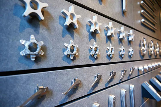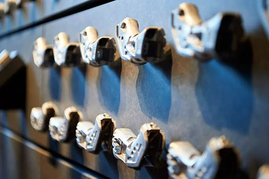 Shimano钛合金部件同样也是在这家工厂制作,但钛合金切割需要更高的压力,因此在切割前机器内部的零件需要有所更换。 铝合金部件则是通过冷锻成形技术制造,而Shimano从1962年开始就已经完美掌握了这项技术。工厂中最大的机器可提供最大2000吨的成形压力,每个零件都经过若干个步骤才能最终成形。