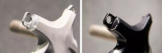 Shimano Dura-Ace和Ultegra牙盘是通过胶水粘合的,这并不是秘密。许多零件都会经过胶合这一步骤最终成形。 粘合后还需进一步在“烤箱”中加工一番。 表面处理
