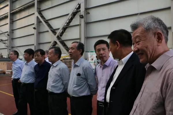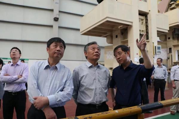 专家委员会成员在兴锻公司总经理张清林先生的带领下对现场的4000T压力机样机进行了考察和运转状况进行了确认,对该产品的功能、性能指标、关键技术解决方案、产品的关键技术创新点以及产品运行的平稳性、噪音状况、设备结构的合理性、外观的美观度等方面均进行充分的了解。