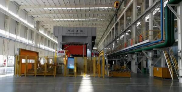 拥有亚毫米冲压成型技术,采用瑞士ABB智能冲压专用六轴工业机器人,七轴工业机器人,配合国内先进的自动拆垛、清洗涂油机,可以快速实现零件自动拆垛、清洗涂油、对中、上料、工序间转运、下料,自动换模等生产步骤,实现100%自动化生产。冲压B线能满足冷冲压用普通冷轧板、镀锌板、高强度板、铝板等各种材料的生产,其适用于板料厚度为0.5-3mm、板料宽度为500-2000mm范围内各尺寸规格的生产,生产节拍为8-16件/分种,最大实现250万件/年汽车冲压件生产能力。B线拥有世界领先的先进的换模技术,实现全工序全过程自动切换技术,全过程的体现现代工业之美。 冲压C线 4600吨国际先进手动数控闭式四点单动压力机生产线