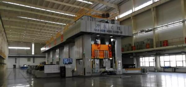 拥有亚毫米冲压成型技术,采用瑞土ABB智能冲压专用六轴工业机器人,配合国内先进的自动拆垛、清洗涂油机,可以快速实现零件自动拆垛、清洗涂油、对中,上料、 工序间转运、下料等生产步骤,实现100%自动化生产。冲压A线能满足冷冲压用普通冷轧板、镀锌板、高强度板、铝板等各种材料的生产,其适用于板料厚度为0.5-3mm、板料宽度为650-4100mm、范围内各尺寸规格的生产,生产节拍为3-5件/分种,最大实现110万件/年汽车冲压件生产能力。 冲压B线 5600吨全自动数控闭式四点单动压力机生产线