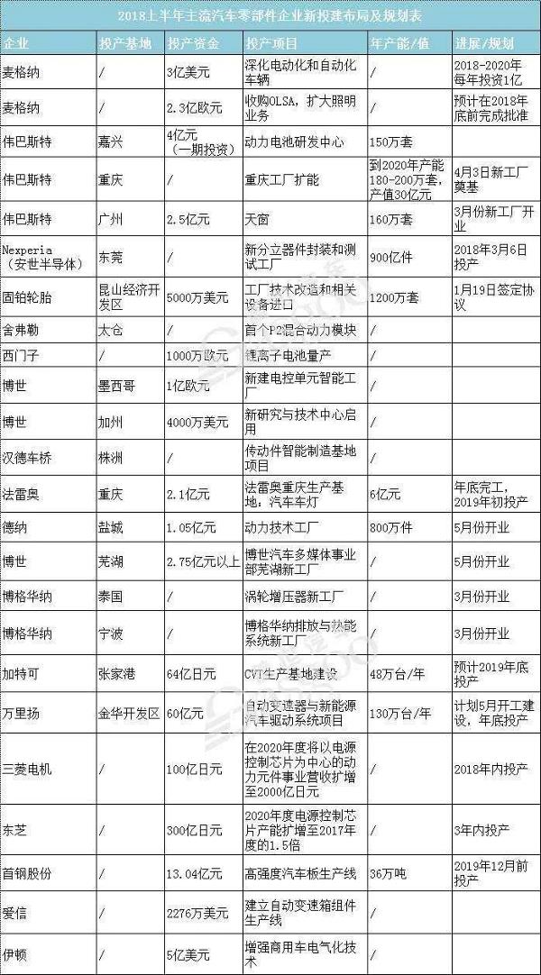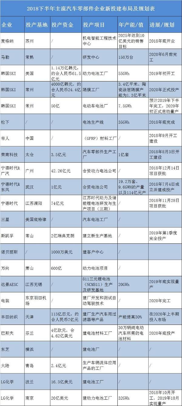 2018年,各大企业纷纷大力推动从传统能源到新能源的过度进程,相比上半年各大零部件企业也是跟随行业变化做出各种战略调整,下半年更是进一步加大了对动力电池和电池相关产品的研究、生产。