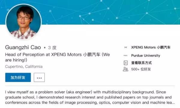 曹光植是可以访问特斯拉Autopilot项目源代码的40名员工之一,特斯拉在诉讼中称,去年,曹光植开始将“特斯拉自动驾驶仪相关源代码的完整副本”上传到他的iCloud账户,最终移动了超过30万个与Autopilot相关的文件和目录。 在去年年底接受了小鹏汽车的工作后,曹光植从他的工作电脑上删除了12万个文件并断开了他的个人iCloud帐户,然后“反复登录特斯拉的安全网络”,以便在他最后一天之前清除他的浏览器历史记录。 根据LinkedIn资料,曹光植本科和硕士毕业于浙江大学电子工程系,之后在普渡大学获得博士学位,先后在GE Healthcare、苹果公司任职。自2017年4月到2019年1月担任特斯拉Autopilot计算机视觉科学家,今年1月到小鹏汽车任职。