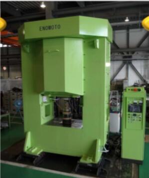 10. 日本ENOMOTO公司研制出伺服电机驱动双螺旋压力机,典型的特点是两个伺服电机驱动两个螺杆,两螺杆驱动滑块下行,可以实现宽台面多工位锻造。也可以大大减轻单螺杆的受力,提升螺杆的寿命。