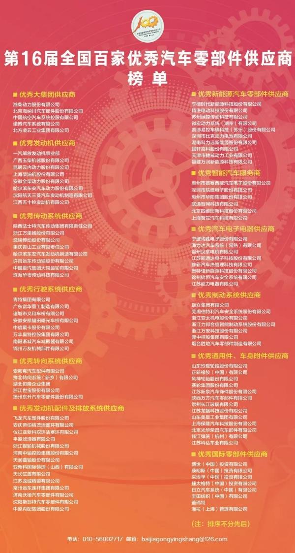 “全国百家优秀汽车零部件供应商”评选活动自创办以来,已经举办16届。该评选坚守“选拔行业精英,树立行业典范”的宗旨,是国内唯一针对汽车产业链零部件OEM供应商的评选活动。