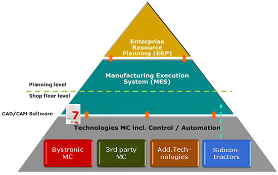 随着首轮“复工潮”的到来,那些提前布局打造了智慧工厂并配备了相应的自动化装备的制造企业,得以在疫情防控的基础上,率先恢复生产经营。还有更多的制造企业在抗击新冠肺炎疫情的过程中,开始思考智慧工厂和自动化的意义,如何帮助企业减少劳动力需求,增强对抗风险能力。为此我们进行一次专题分享,为广大钣金制造企业深入介绍瑞士百超的智能制造理念和解决方案。 目前,绝大多数国内钣金制造工厂仍属于劳动力密集型,自动化、信息化和智能化水平较低,生产管理系统相对孤立,数据分散而不透明。随着劳动力供给不足和各项成本上升,生产的成本和效率面临巨大挑战,已经无法满足小批量定制化的趋势要求。相比之下,智慧工厂强调在企业内部统一的信息管理体系基础之上,集成MES系统,计划、调度、生产,达到人和设备的高度匹配,能够对整个生产过程进行实时监控与数据采集,通过数据分析并组织生产,更合理的分配闲置生产资源,提高生产效率,以较低的成本实现大规模定制化生产。